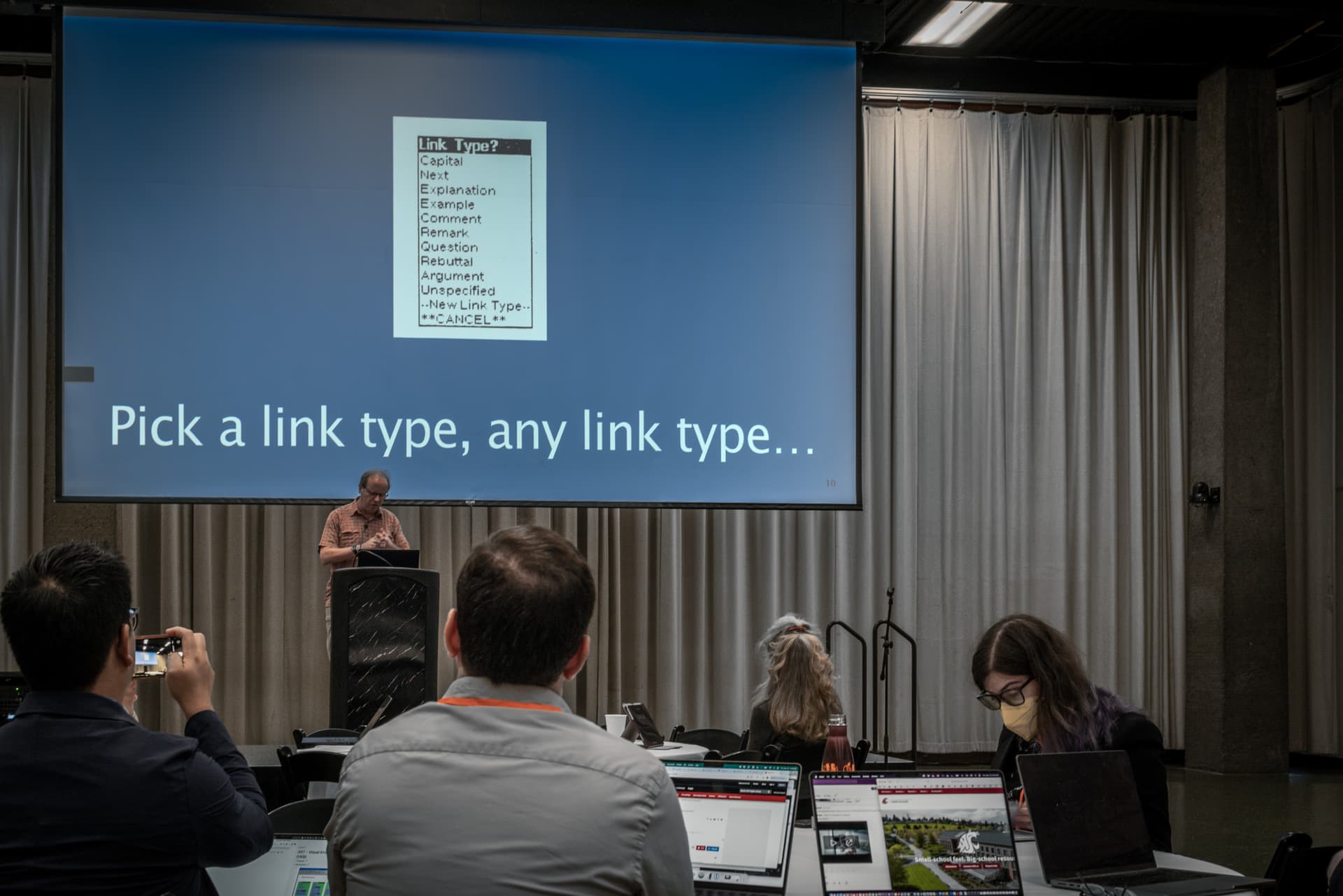 Tinderbox and innovation it brings into hypertext research is a regular theme on the ACM Hypertext conferences. This year, Mark Bernstein and Mark Anderson talked about spatial hypertext, AI, note taking and augmentation of human intellect on several occasions (workshops, discussion panels, presentations) from the historical, experiential and even philosophical perspective. Mark A. is also involved in a VR project for the Future of Text initiative, where he and Dene Grigar develop a user friendly VR interface for text annotation.