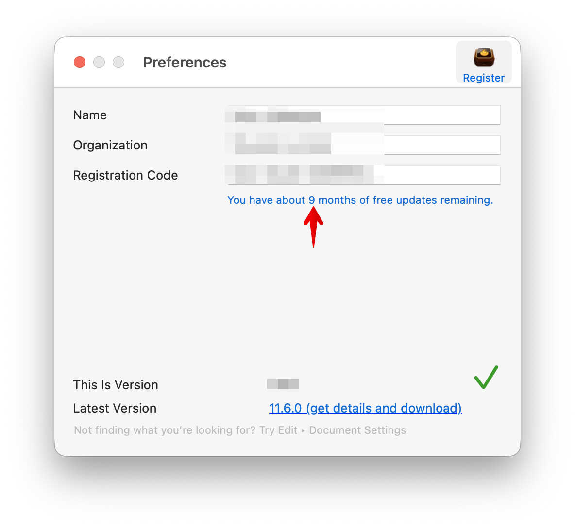 As long as you have 1 or more months shown in the place indicated above, you can download the ‘demo’ and use it. Close your current version of the app and then drag the new app into your /Applications folder and install over the existing app. When you open the new app would existing licence will be detected.