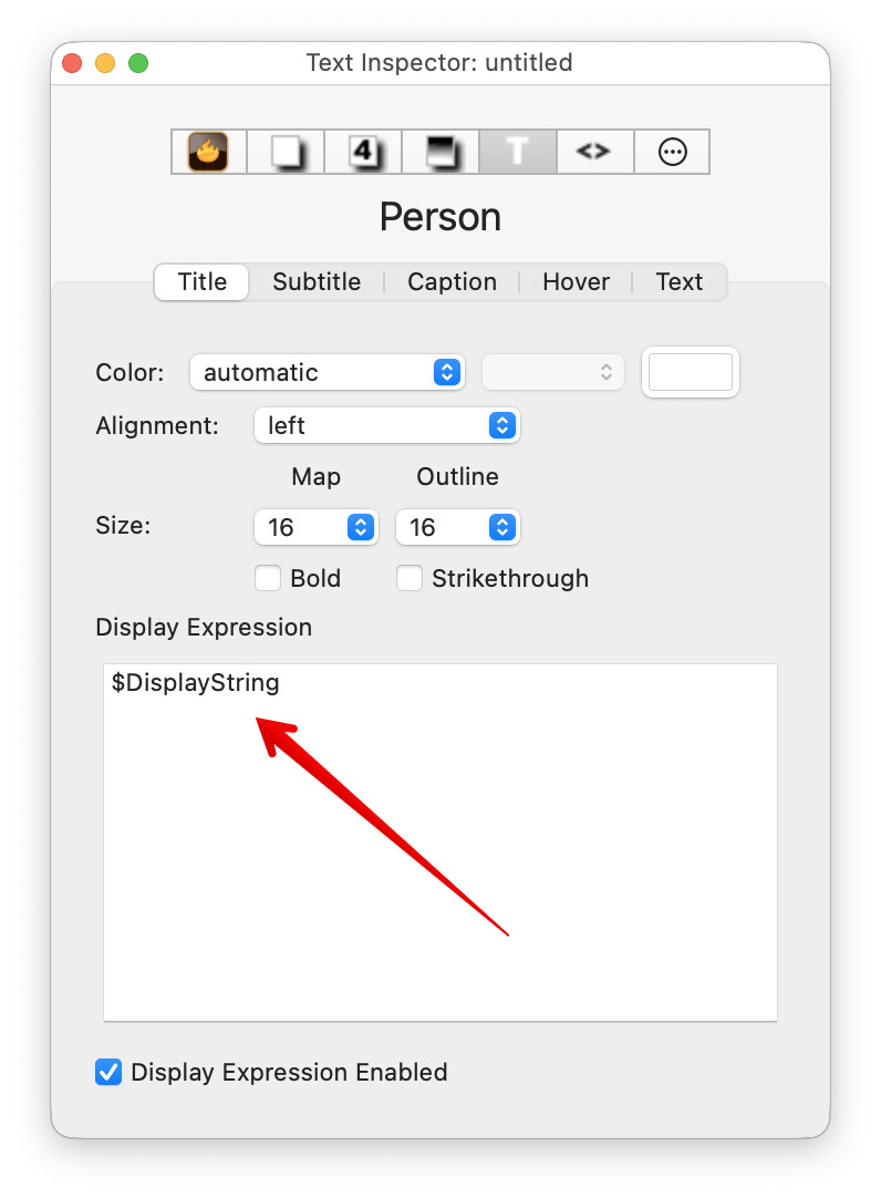 For that purpose, I put the following in the prototype’s $DisplayExpression attribute, expecting it to do the job: