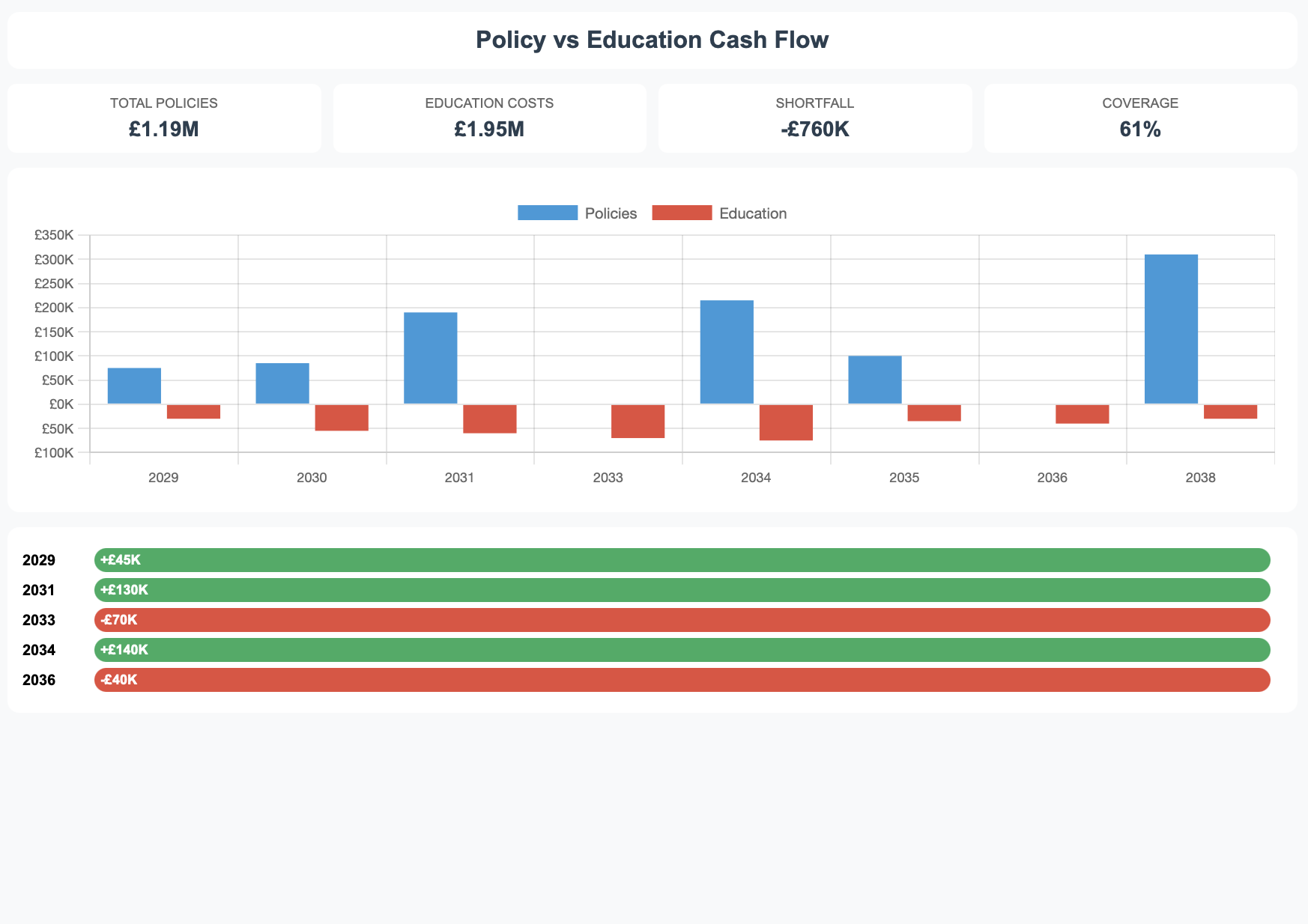“Make a poster note showing cumulative payments over the years for each policy.”