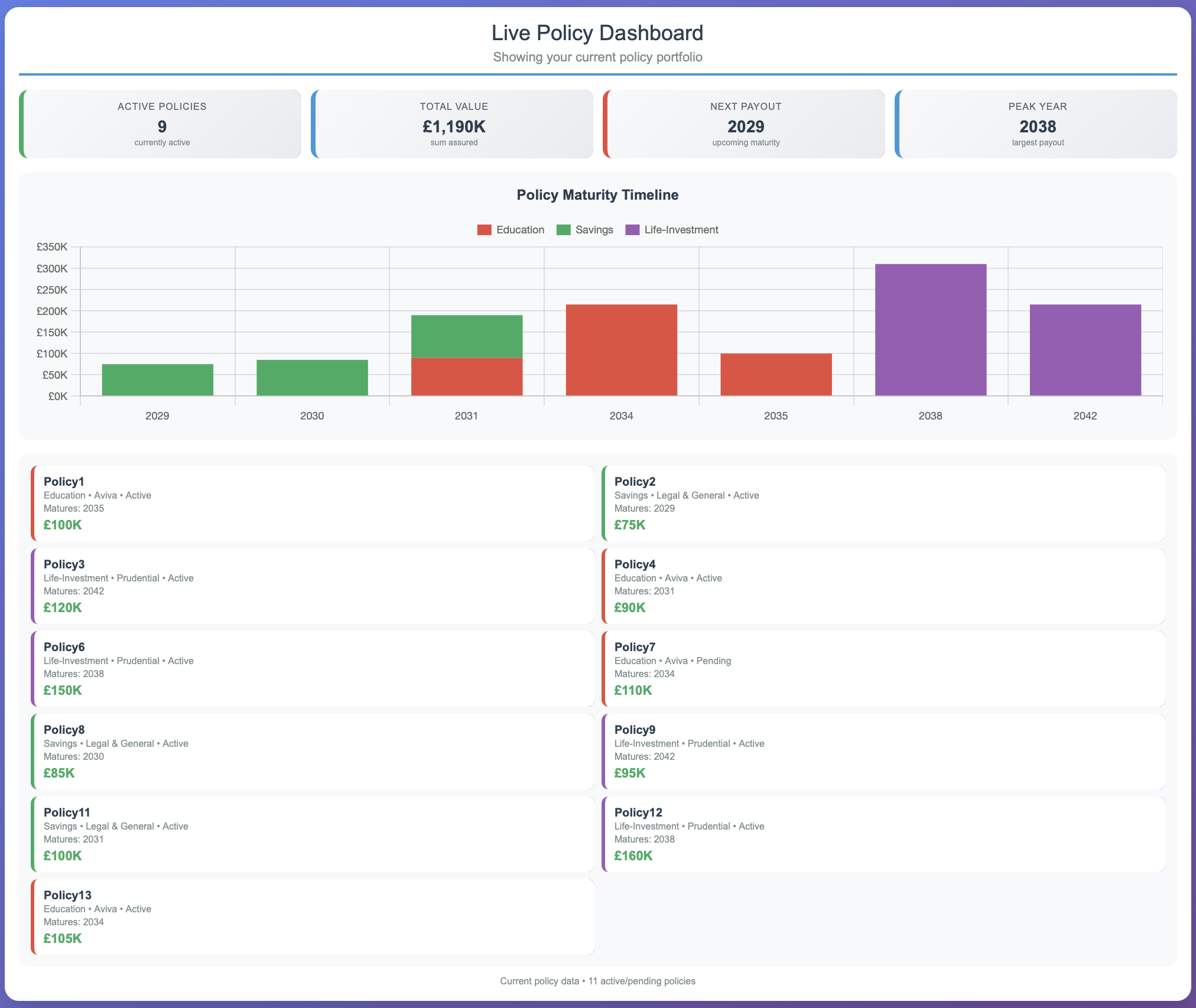 This poster uses proper Tinderbox template syntax to pull live data directly from your policy notes. It will automatically update when you change policy amounts, dates, or statuses.