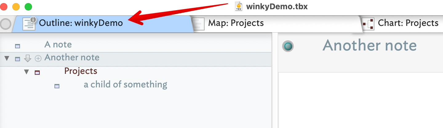 If you still donât believe me, in outline view , add a note or container insider one of your existing containers and name it âsomethingâ. HereIâm showing that in a new document with a single Outline view tab: