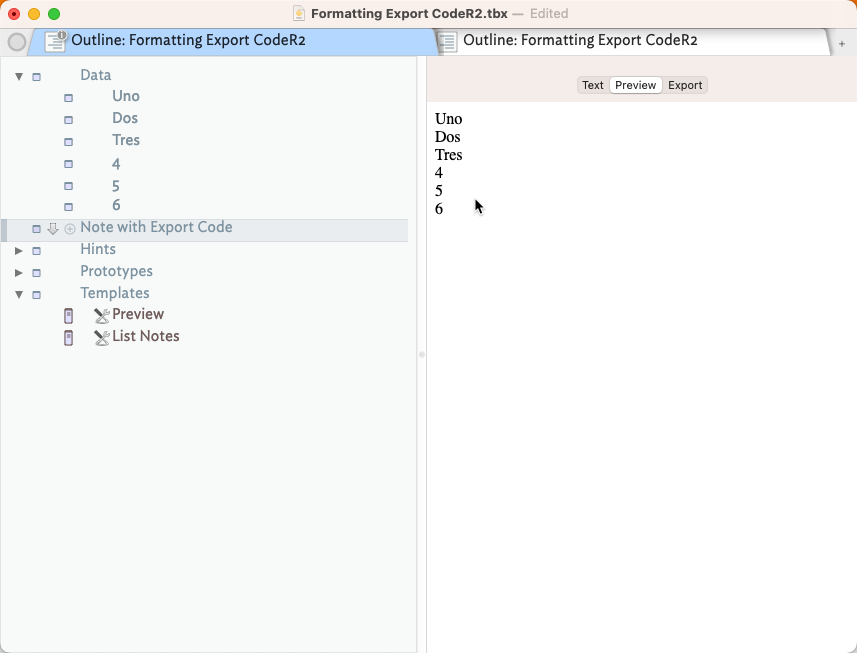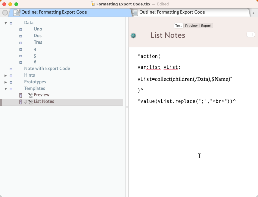 If you actually wanted the list in the $Text of the note, so that the list show birth in-app and in preview (for export) preview correct style, a rule/edict/stamp you this code is an approach:
