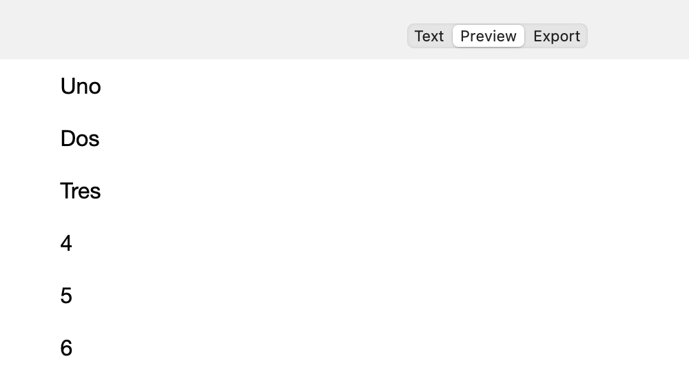 In the Preview pane, we still see Uno Dos Tres 4 5 6, because HTML ignores carriage returns. If we want to have items appear on separate lines in the preview pane, be need to insert the <br> (break) tag: