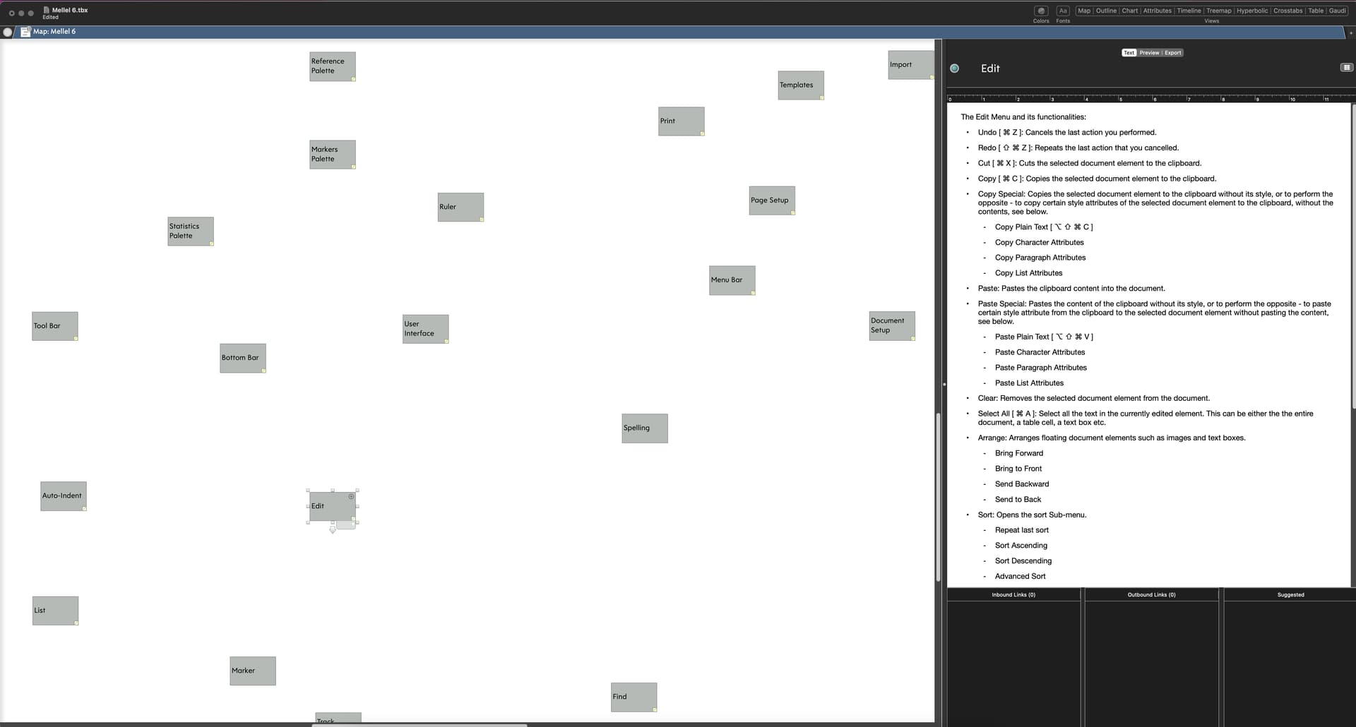 The selected note in your screenshot is named Edit; its text describes the Edit menu and its functions. This information pertains to some application, though it’s not a description of the Tinderbox Edit Menu; as the document is named Mellel, I assume it’s the Mellel menu.