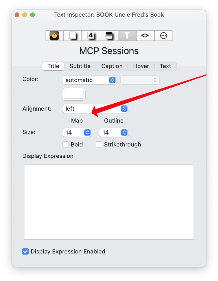 A separate case might be that you want all note in the TBX file to use the same, non-default, $NameAlignment value? For that we edit the attribute document level default in a different part of the Inspector, in the Document Inspector’s ‘system’ sub-tab. Open that Inspector and select the NameAlignment attribute to display its settings: