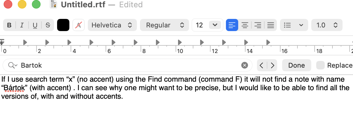 - Search term “Bártok” works using ‘Regular Expression’ match choice). Tested $Name and $Text separately as the target attribute.