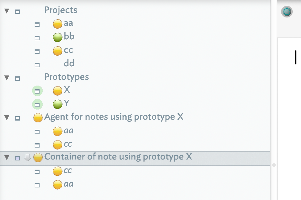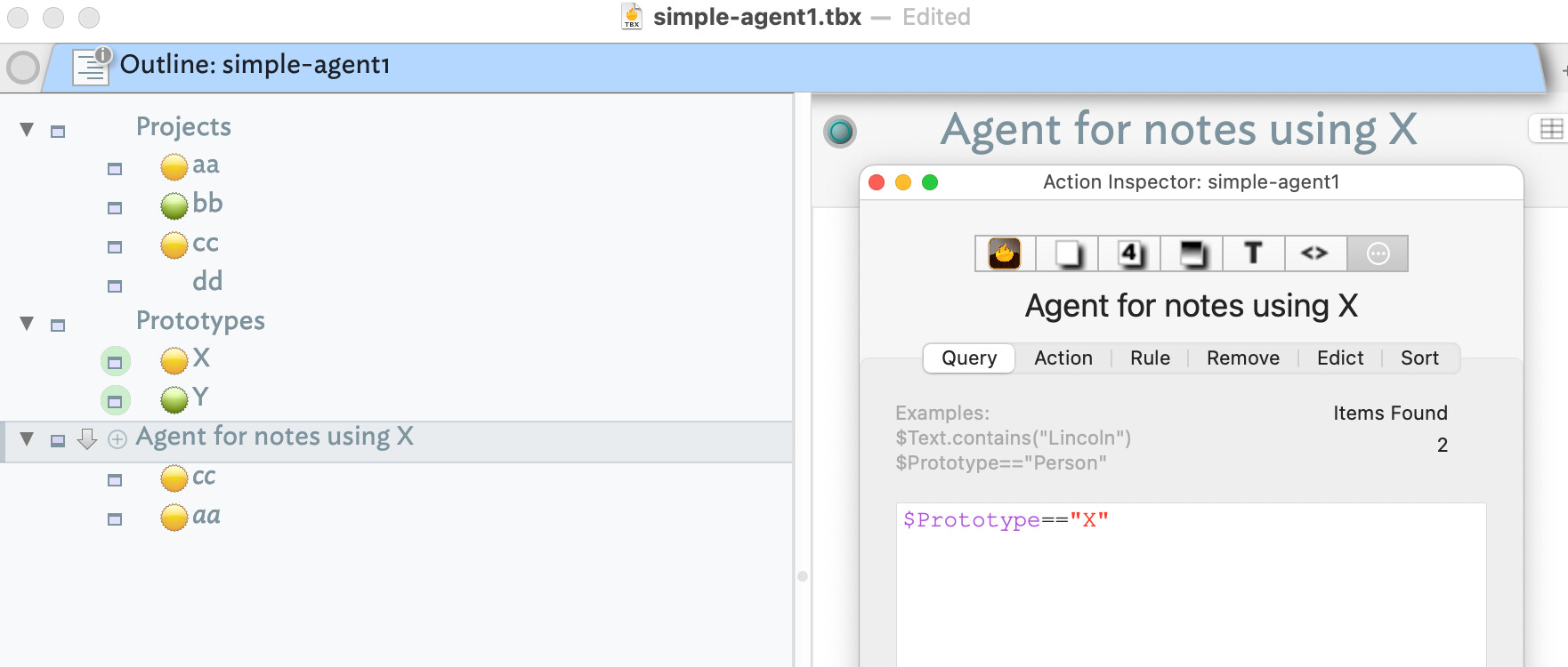 to create an alias of any note (in the whole document†) that uses the prototype ‘X’. As expected, it has just 2 aliases. They currently don’t sort in the same order as their original notes but that can easily be resolved by configuring the agent some more. The aim here is to the main idea.