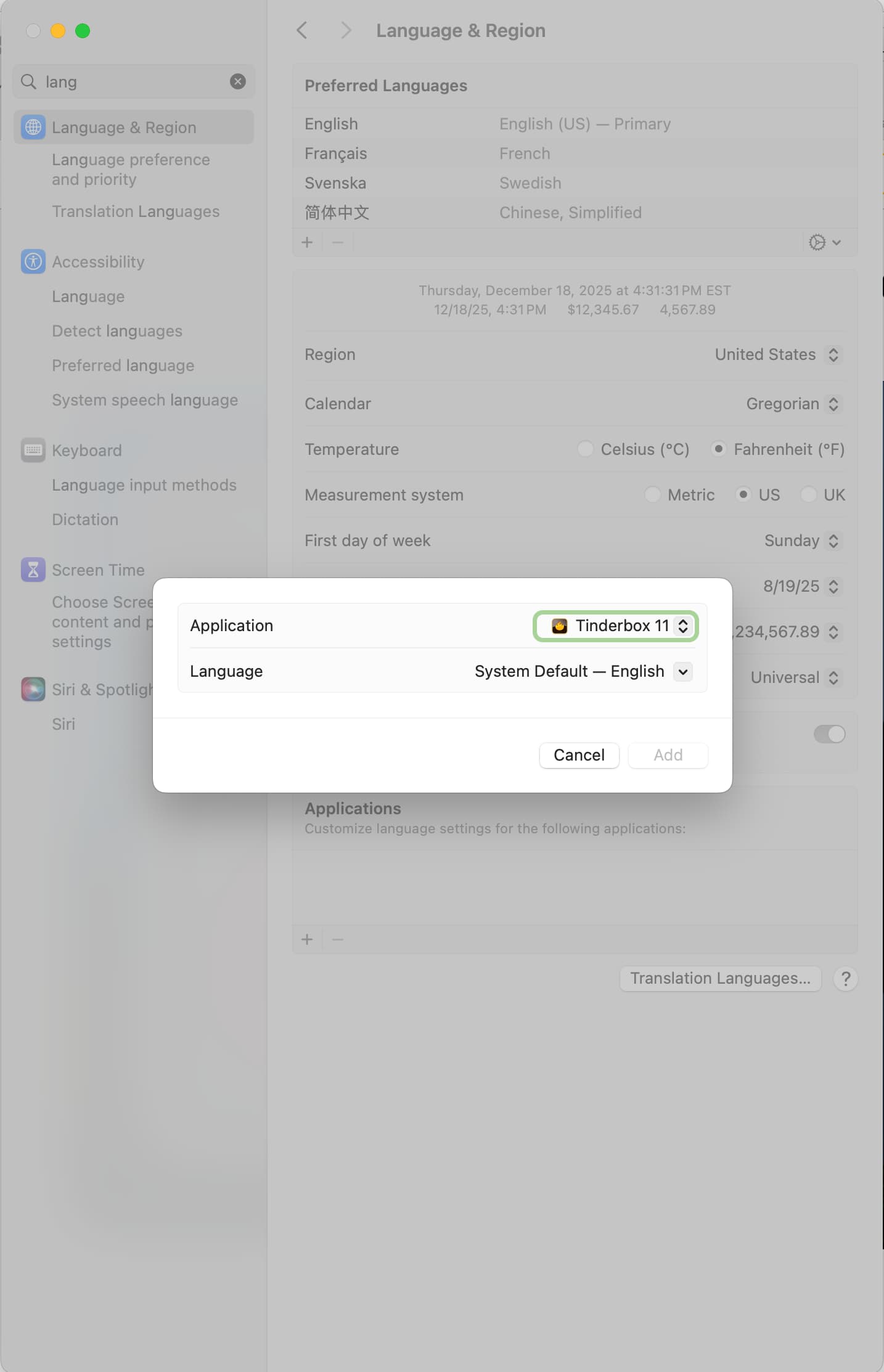 just installed TBX 11.5 and since my Mac is running the OS in German, TBX switched to German too.