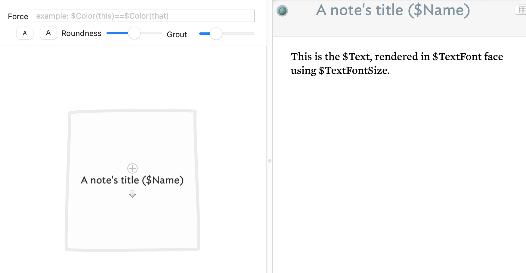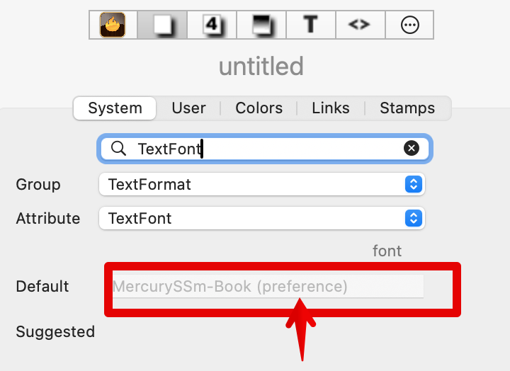 $TextFont is used to set the font face of a noteās body text ($Text). $TextFont in the Inspector looks like this: