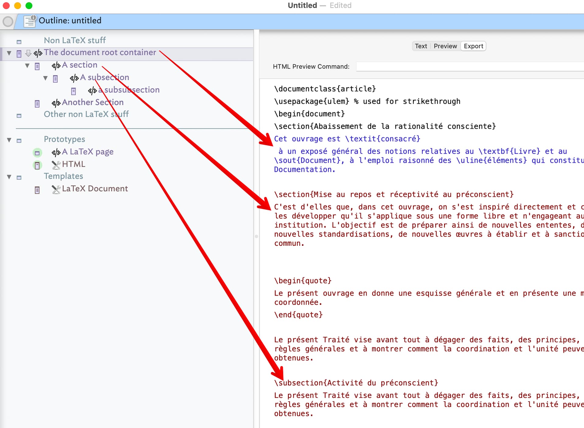 FWIW, a quasi-doc level preference can be achieved now, by adding a built-in (‘LaTeX’) prototype and two built-in templates (‘LaTeX document’ and ‘LaTeX’ text). That only requires adding the source data for those ‘notes’ into the app and adding a few menu items. Either the prototype or the template can set attributes like the export file extension and other non-HTML specific export features.