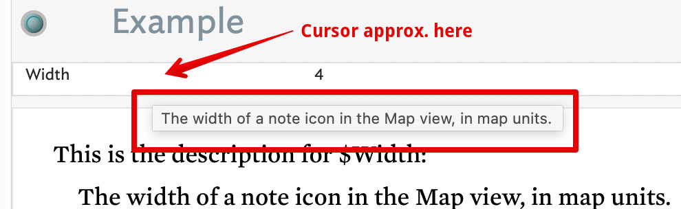 A good place to store those explanations is in the user attributeās Description, ā+1 to open the Inspector. Then youāve also easy access to attribute & description via action code, for instance to insert the info into a table via a template you view preview. If youāre not happy reading the preview you could copy the table from the preview and paste into $Text.