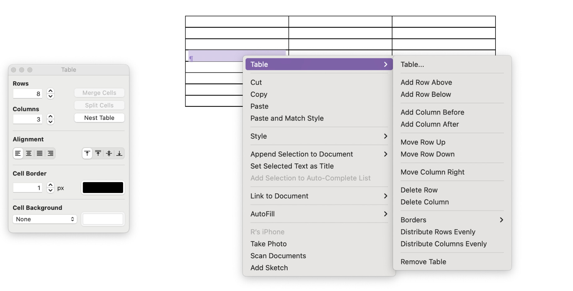 In continuation of my previous message, I noticed that the similar Table dialog is used in Scrivener. However, the latter also provides for a right-button mouse sub-menu āTableā that allows perfroming operations with table rows/columns. Is there any similar functionality availiable for Tinderbox?