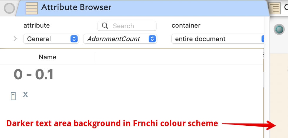 The background colour of the attribute browser is dark